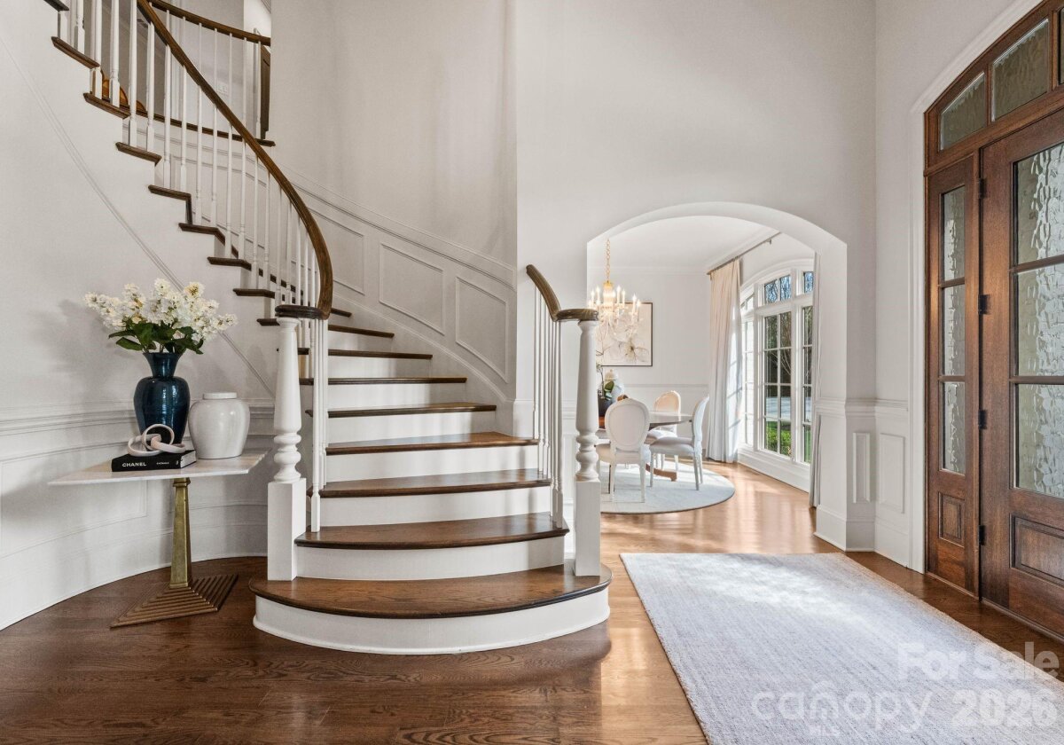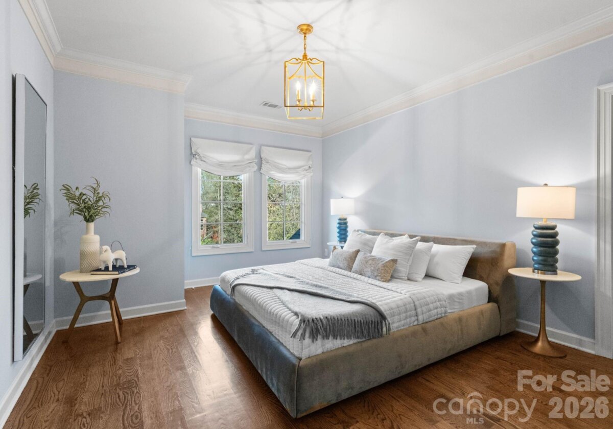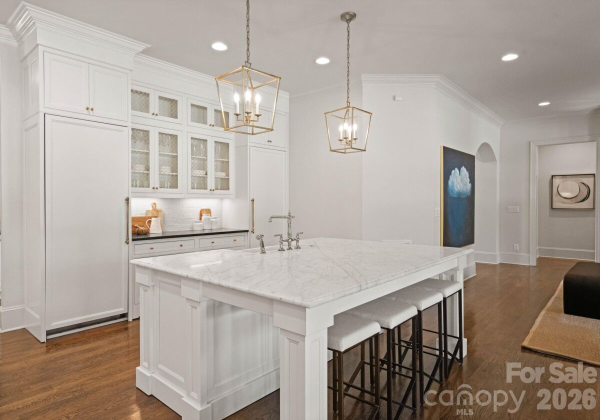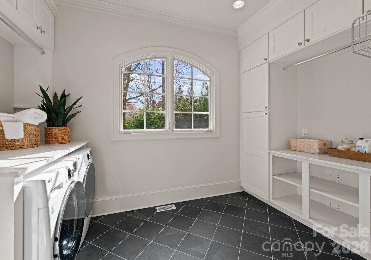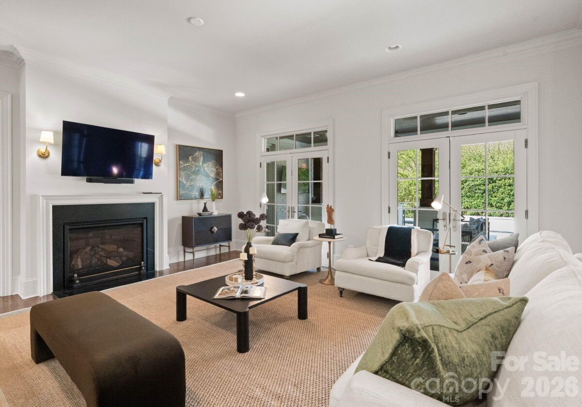 Welcome to 2043 Sharon Ln-a hidden gem in a coveted location! This stunning, private, all-brick custom, built in 2017, is nestled amongst the trees off a long drive. Enter from the covered front entry into a welcoming foyer, with an elegant curved staircase. A gorgeous study with built-ins and a formal dining room flank the entryway. Custom gourmet kitchen with large marble island and Thermador appliances, opens to breakfast area, family room, and keeping room, both with fireplaces. Drop zone, office area, large butler's pantry, and oversized laundry room are located off kitchen. Vaulted keeping room with fireplace overlooks an amazing covered porch with built-in grilling station and adjacent fire pit. A saltwater, heated pool with waterfall features was added in 2022 to enhance the private backyard sanctuary. The primary suite on main boasts a luxurious bathroom with dual walk-in closets. Upper level has three large bedrooms each with direct access to beautiful baths, a large bonus room, and area plumbed for 2nd laundry. Large walk-in storage area can be converted to additional living area. This very private retreat is minutes from Southpark and Uptown.