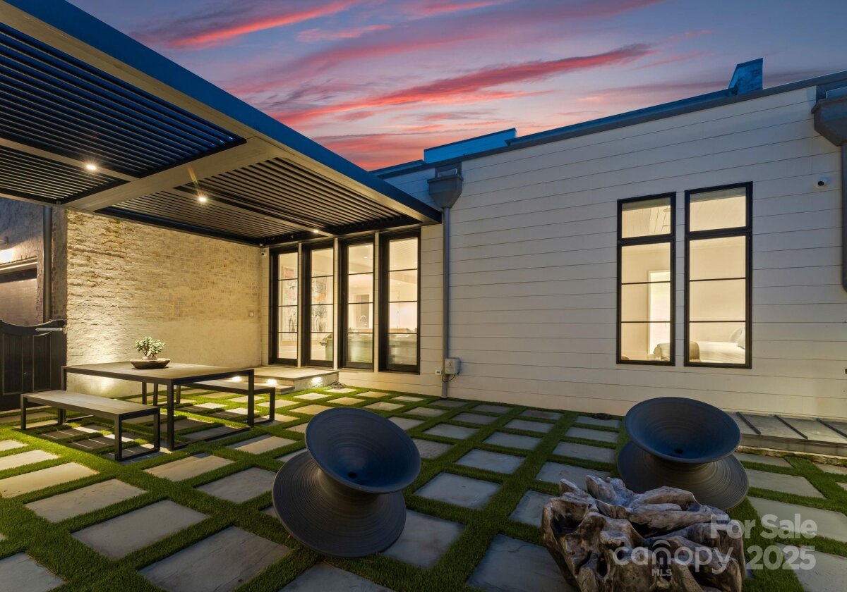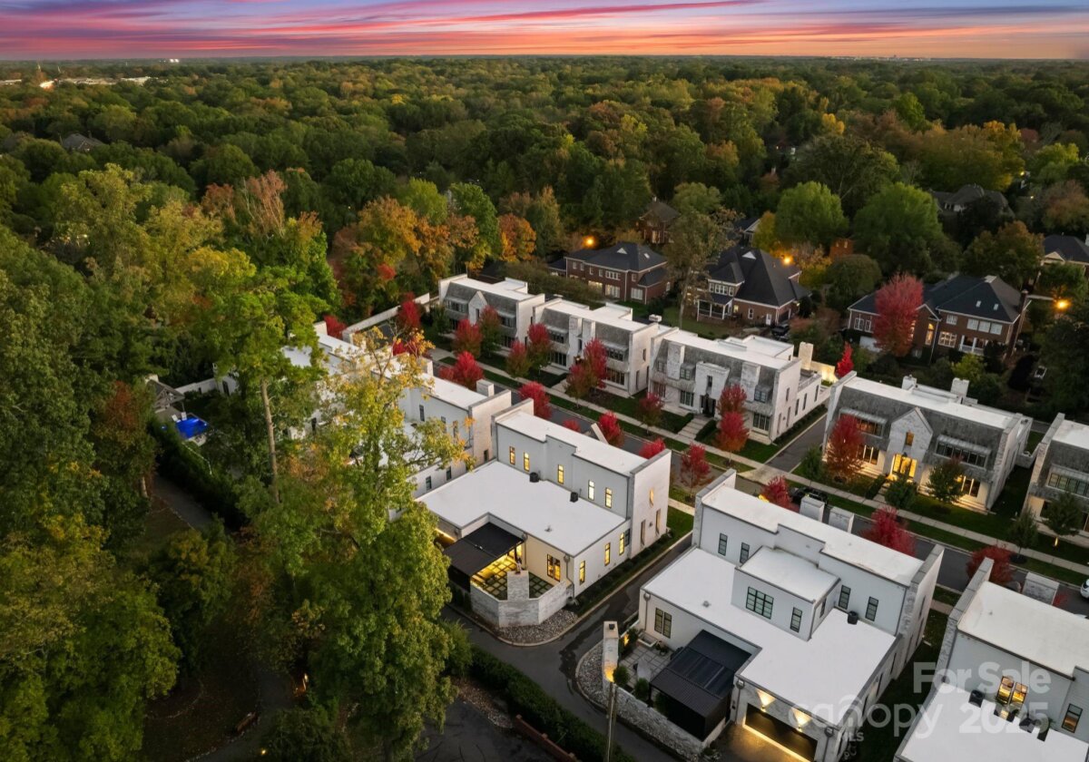Tucked on a quiet cul-de-sac in one of Charlotte’s most sought-after areas, this residence blends refined luxury with modern comfort just minutes from SouthPark, Myers Park, Eastover, and Uptown. Its prime location offers walkable access to shops, restaurants, and medical facilities, with top public and private schools close by. Situated between Foxcroft and Cotswold, Kenwood Sharon Lane is an exclusive collection of ten custom homes designed by Don Duffy and artfully built by Thomasson Builders. Sold fully furnished, including curated pieces from designer furniture label Verellen, this home showcases impeccable craftsmanship, timeless finishes, and an effortless indoor-outdoor flow. The main level features a grand two-story foyer, 10’ ceilings, a powder room, and a stunning open-concept living and kitchen area. The chef’s kitchen is equipped with Sub-Zero, Wolf, ASKO, and Liebherr appliances, complemented by soft-close drawers, extensive custom cabinetry, and a walk-in pantry. The elegant main-level primary suite offers an expansive spa-inspired bath with dual vanities, heated flooring, a glass walk-in shower, and a freestanding tub, as well as a large custom walk-in closet with built-in shelving and storage. Additional main-level spaces include two wine refrigerators, and a butler’s pantry with a coffee bar and display shelving, an inviting living room with a modern gas fireplace and custom built-ins, a spacious family room, an office or formal sitting room, and a functional drop zone/laundry room with a dog wash and feeding station. Upstairs, two spacious guest suites each feature designer lighting, walk-in closets, and luxurious ensuite baths. Outdoor living is elevated with a covered rear patio featuring an electronically controlled louvered roof, a built-in TEC grill station, an outdoor fireplace, and beautifully landscaped surroundings with full security coverage. A rare turnkey offering in a prime Charlotte location!