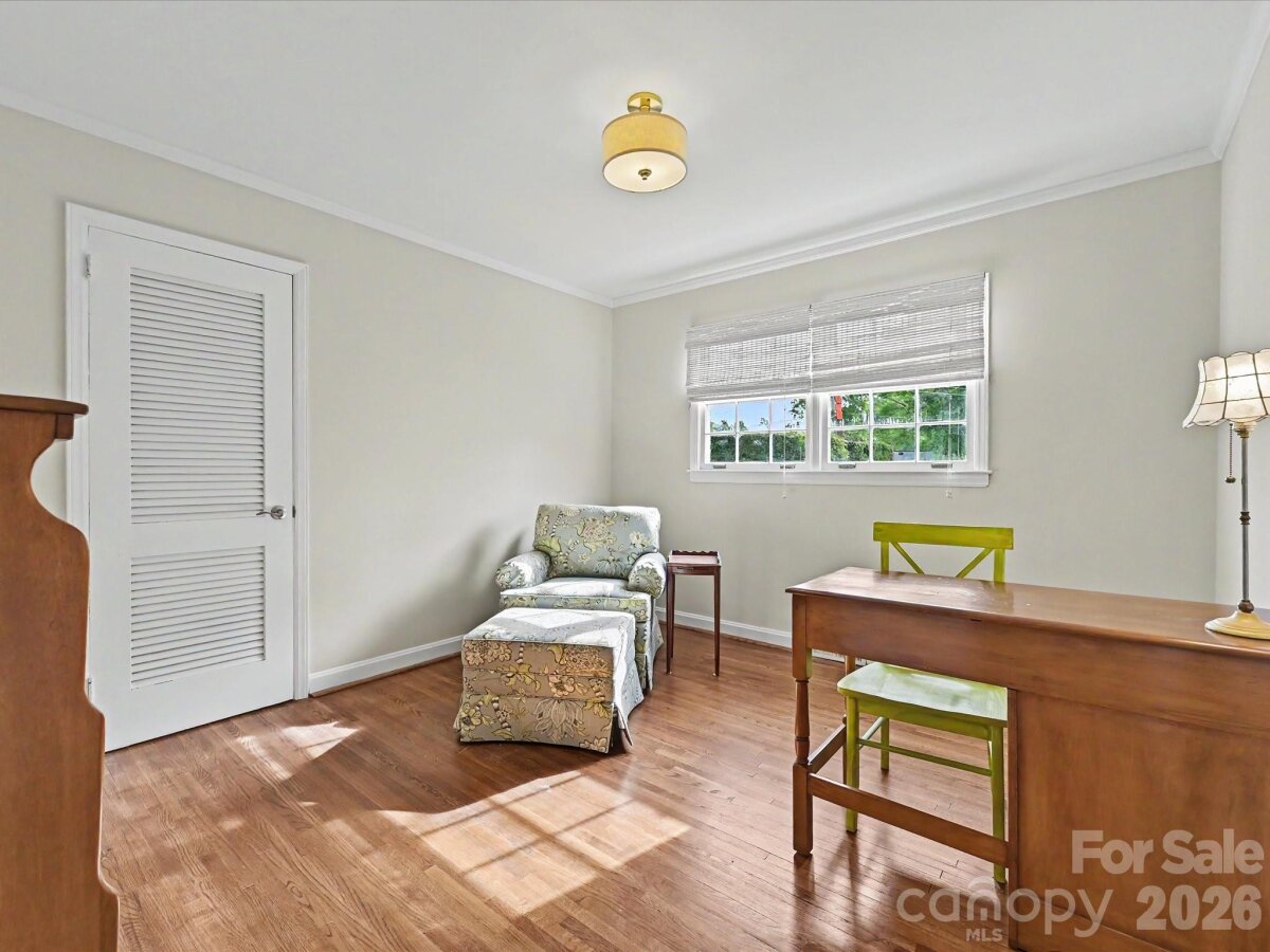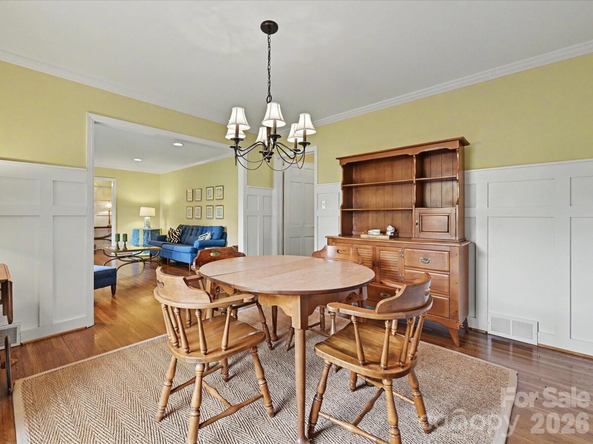 Welcome to 3927 Barclay Downs Drive, a classic brick ranch in the heart of SouthPark offering timeless charm and solid construction. This well-maintained home features beautiful wood floors throughout most of the home and crown molding that reflect its quality craftsmanship. The traditional floor plan includes a welcoming entrance, formal living room, and dining room—perfect for entertaining. The kitchen offers cork flooring, built-in cabinetry, a pantry, and opens to a bright breakfast area. Just beyond, the cozy family room features built-in shelving and a wood-burning fireplace that has been relined. The home includes four bedrooms, all with wood flooring and generous closet space. The primary suite features double closets that connect across the back wall and a renovated primary bathroom with its own linen closet. A full hall bathroom offers a double vanity, tub/ shower combination, with a convenient laundry closet and additional linen storage. Additional highlights include a large attic, a screened-in porch overlooking the flat yard. The HVAC system has been regularly serviced twice per year. Outside, the property offers a two-car carport, concrete driveway, and a storage shed with lighting. This classic Barclay Downs home presents a wonderful opportunity to move into one of Charlotte’s most sought-after neighborhoods and make it your own.