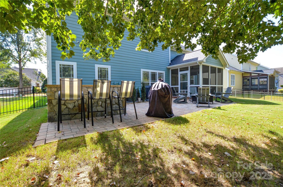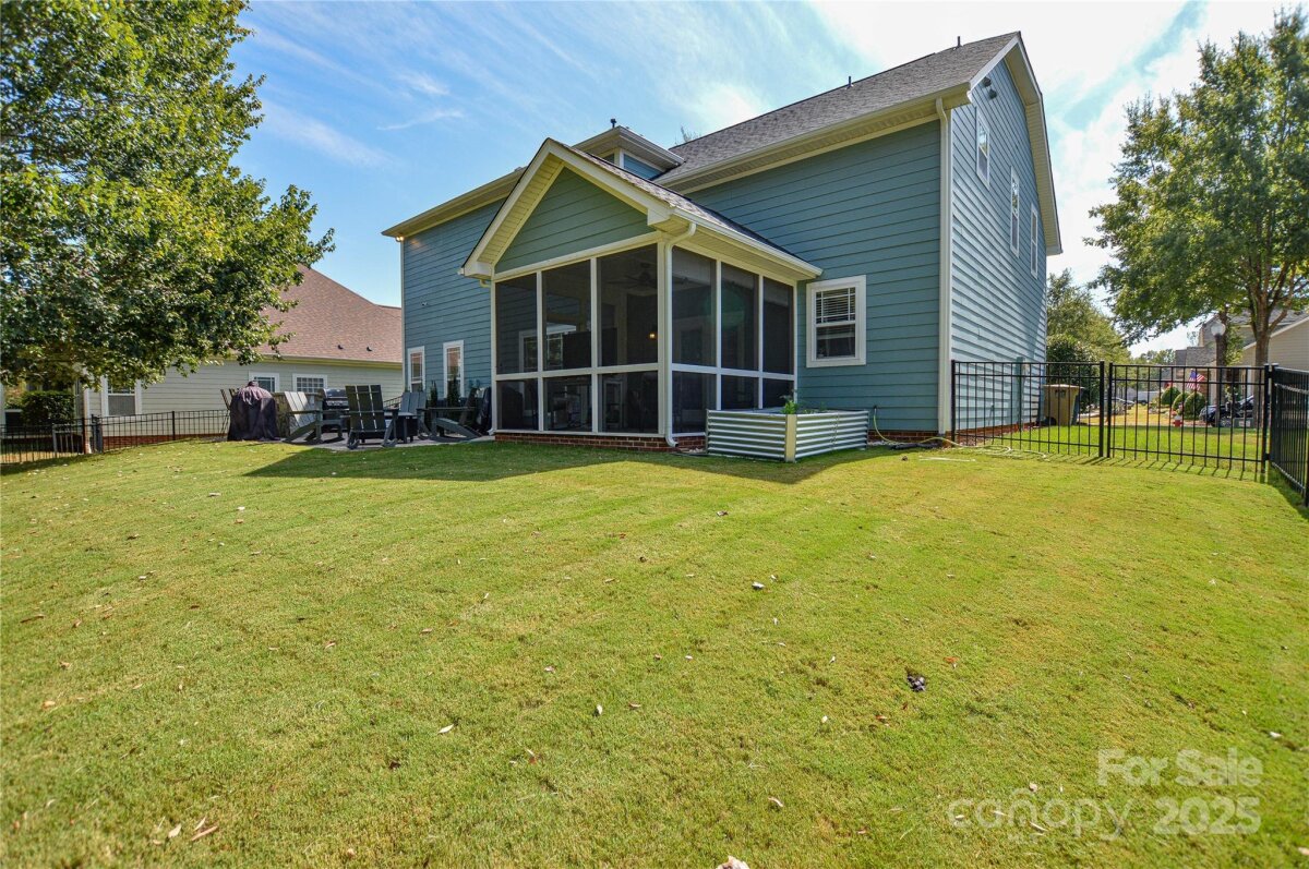 This is a beautiful home! Located in the desirable Bonterra community with countless amenities, this spacious home offers so much. With 5 bedrooms and a bonus room, this home will easily accommodate your family and guests! This home has been cared for and updated with new luxury vinyl plank flooring on the main level and carpet upstairs. There is a downstairs bedroom and full bath to conveniently accommodate guests. In the past five years, the roof has been replaced, as have the heating and air systems and the water heater. The large primary bedroom features an incredible, oversized custom closet you have to see to believe! The primary bath features two separate vanities, a garden tub, and a water closet. The backyard backs up to a beautifully wooded area providing a lovely backdrop and privacy. The beautiful lawn is maintained with an irrigation system. New gutters recently installed. The backyard also features a screened porch, with a lovely mosaic tile floor, and a recently installed stone patio with a grilling station and bar. Inside or out, this home was built for entertaining! Excellent Porter Ridge schools, easy access to the bypass and 485 -- don't miss this opportunity! Bonterra is an awesome place to live, especially around the holidays. This home is priced to sell, and ready for you to move right in.