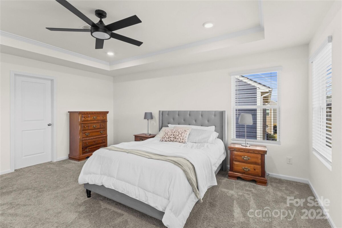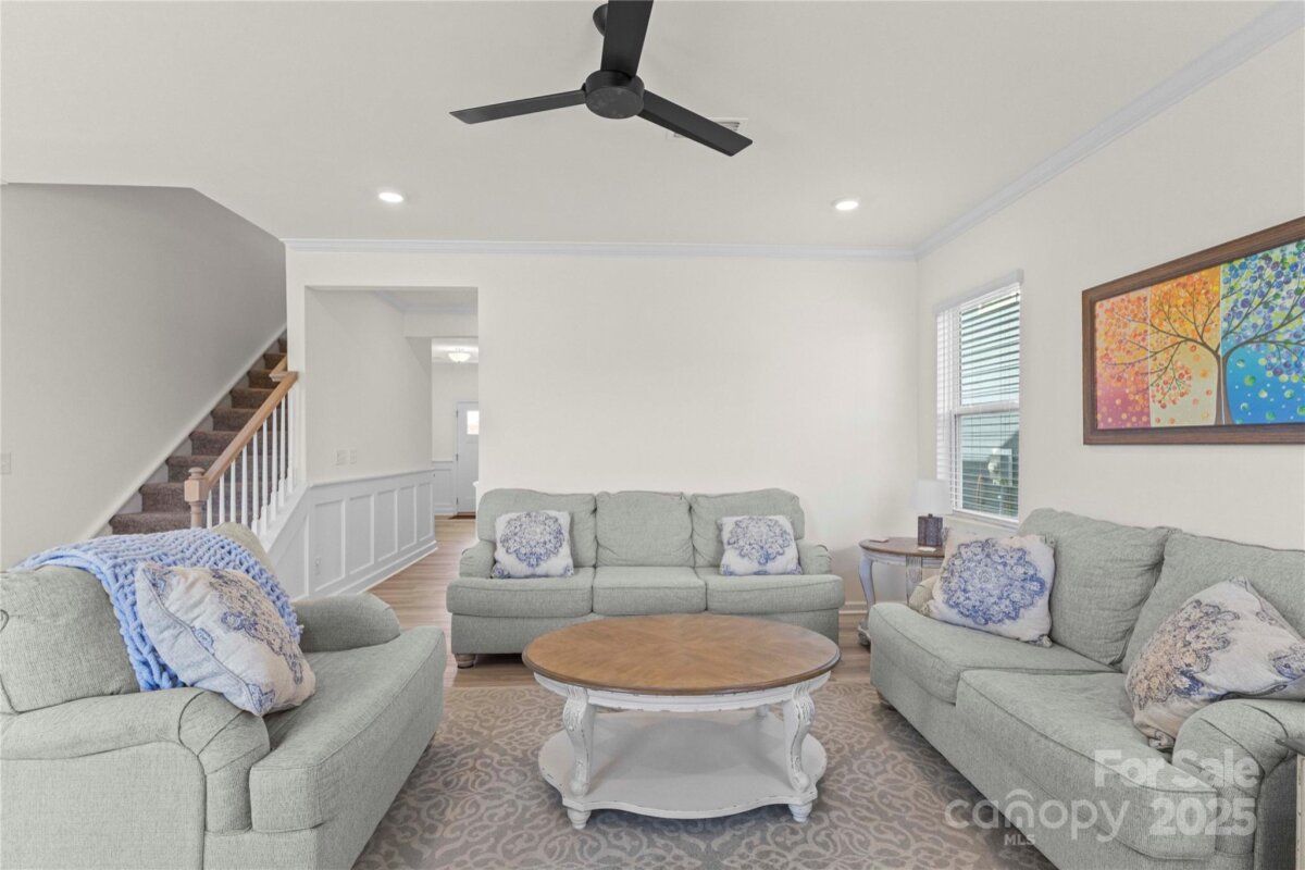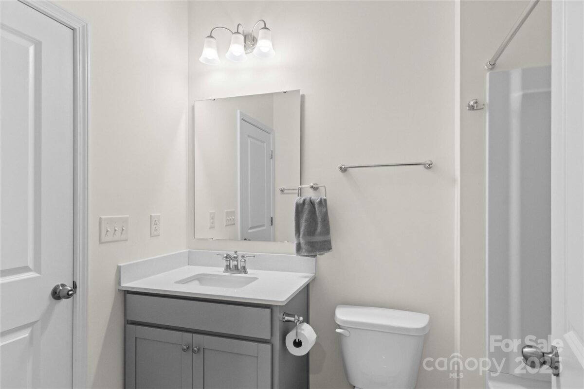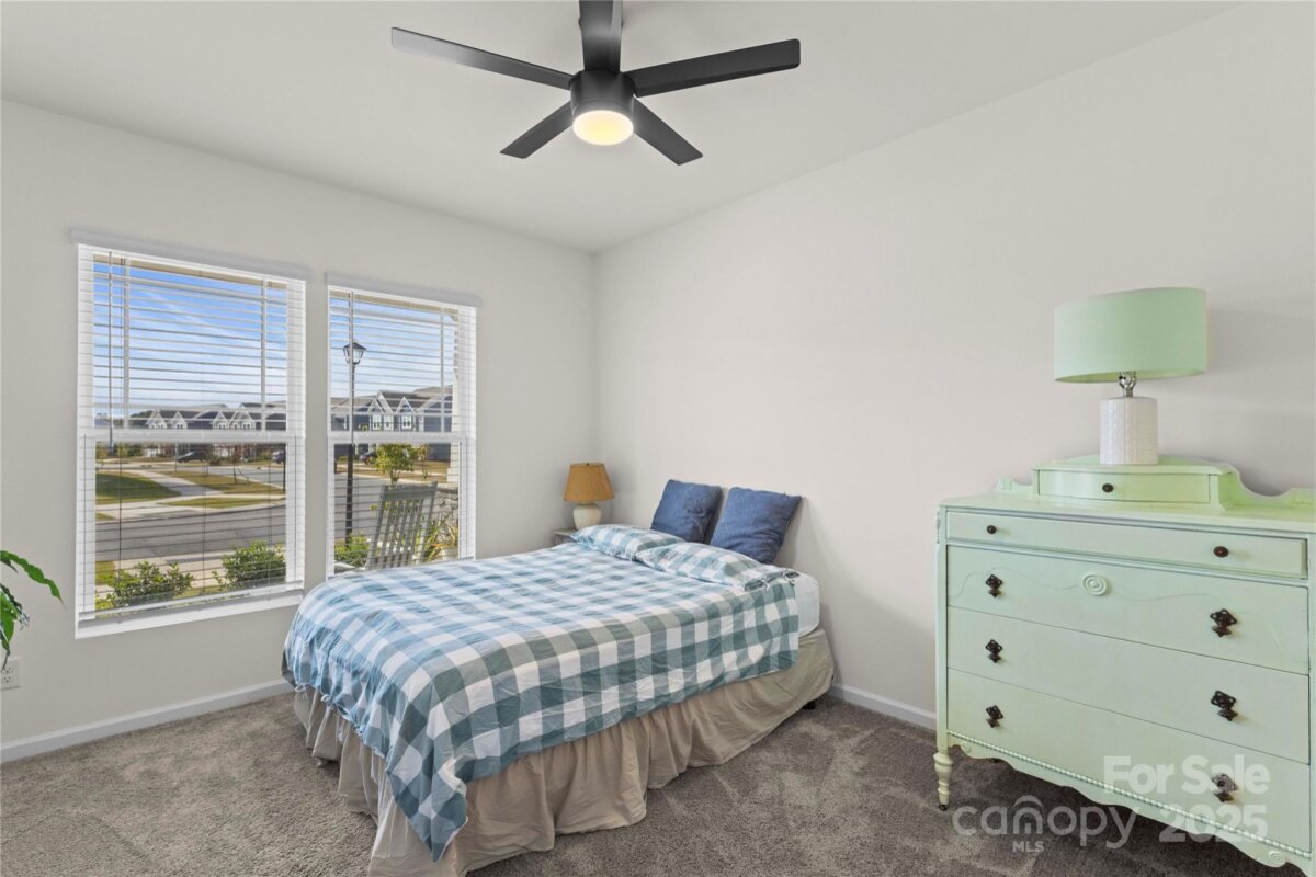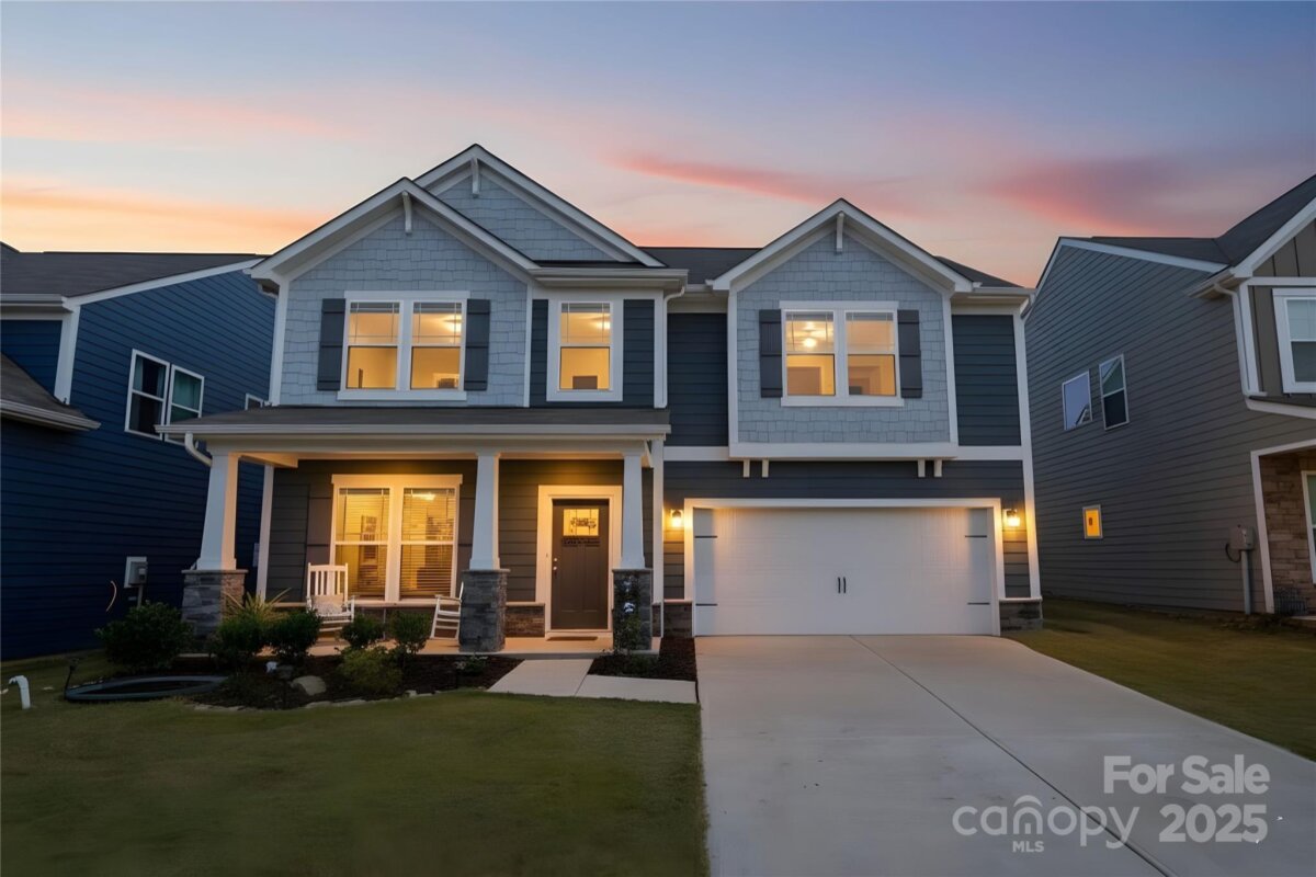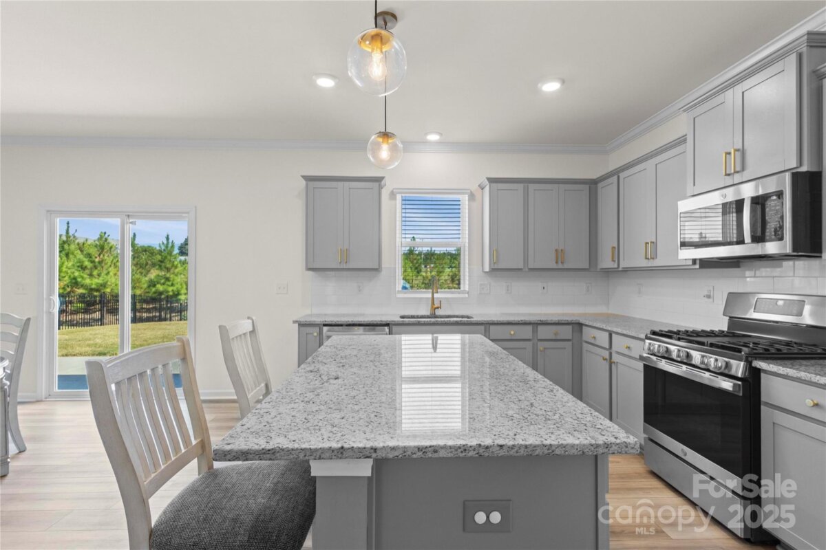 Move-in ready and better than new, this 5-bedroom home has it all! A welcoming rocking chair front porch sets the tone before you step inside to an open floor plan filled with natural light and durable LVP flooring. The spacious living room flows into the kitchen and dining area, perfect for gatherings. The kitchen shines with granite countertops, lots of cabin space, subway tile backsplash, gas range, island seating, and a walk-in pantry. The main level also includes a bedroom and full bath—ideal for guests or a home office. Upstairs, the primary suite impresses with a dual vanity, tiled shower, and generous walk-in closet. Three additional bedrooms share a full bath with double sinks, while a versatile loft offers space for a rec room, play area, or second living room. Step out back to your fully fenced in yard, perfect for relaxing or entertaining. Designed for convenience, this home features an upstairs laundry and plentiful storage throughout. Community amenities include a picnic area and playground, with quick access to the Monroe Expressway and nearby schools.