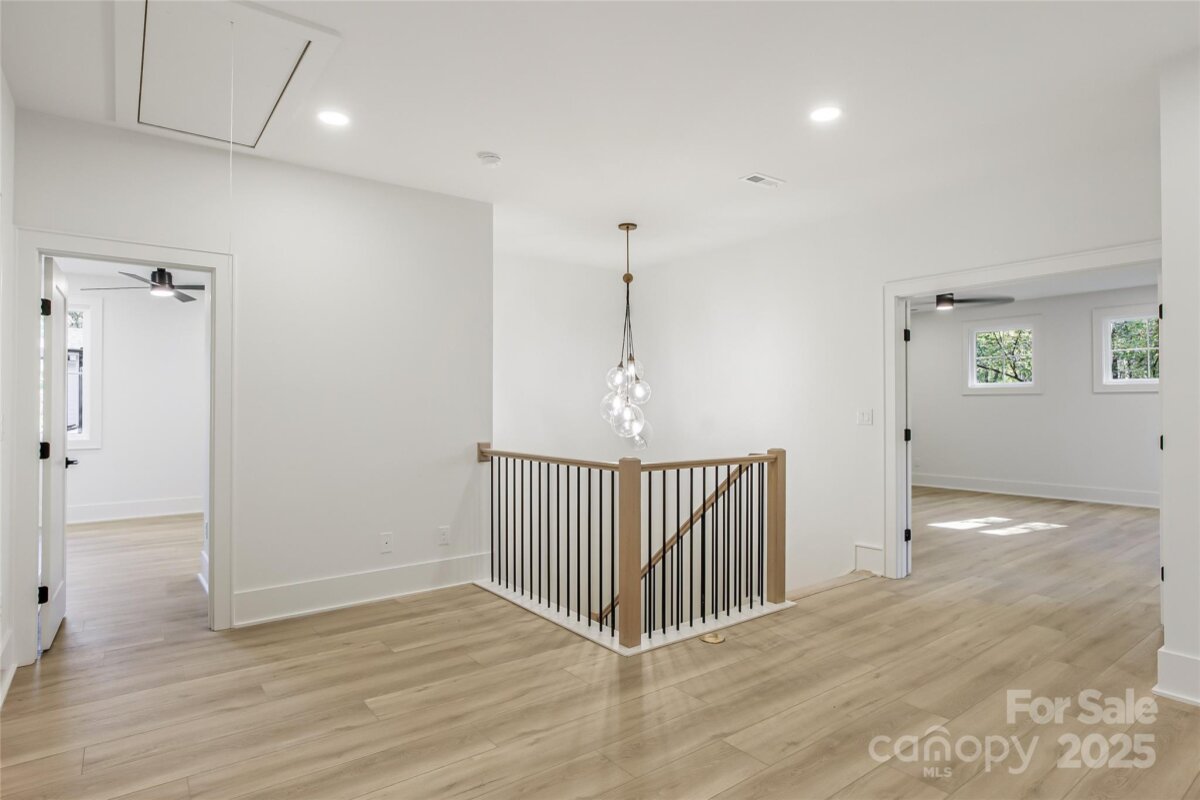 This exquisite, contemporary custom build is the perfect combination of luxury and style. Nestled on a wooded homesite, this exceptional property offers a rare opportunity for those seeking a sophisticated home built with trusted & expert craftmanship. The attention to detail is unparalleled with distinctive lighting & high end finishes throughout. The gourmet kitchen is truly a chef's dream offering an oversized center island plus equipped with stainless steel appliances & single bay sink. The open dining area flows seamlessly into the great room. Just outside the dining area is the covered, screened deck overlooking the serene wooded backyard. The luxurious primary suite has a spa-like bath with design features such as an open tiled shower w/ soaking tub, dual vanities, & custom walk-in closet. Unbeatable South Charlotte location within walking distance of top rated schools, plus close proximity to shopping, dining, medical & easy access to I-485.